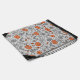 This design presents a fun and playful Halloween-themed doodle pattern, perfect for kids. The design is filled with an assortment of cute, hand-drawn Halloween icons, including smiling jack-o'-lanterns, friendly ghosts, black cats, bats, candy, and spider webs. Additional elements like witches' hats, tombstones, skulls, candles, and "Trick or Treat" signs are scattered throughout, all drawn in a simple and charming style. The pattern is set against a light gray background, with the doodles outlined in black and accented with pops of orange and white. The overall vibe is festive and lighthearted, making it ideal for Halloween celebrations with a fun and whimsical touch.