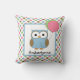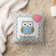Cute Kid's Personalized Owl w/ Balloons Throw Pillow