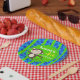 GET YOUR PARTY ON! Festive, cheery, fun, cool paper plates feature a friendly, cute, whimsical toy monkey on a colorful pattern of stripes and polka dots. Comes in 10 colors. Use the CUSTOMIZE IT button to add text. Matching party invitations, napkins, blankets, wallclocks and other products available. For questions/requests, email: cheryl@cheryldanielsart.com. "Kids Toy Monkey" by Cheryl Daniels © 2014.
