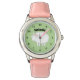 Cute Kid's watch with sheep farm animal and childs name. Personalizable wrist watches for boys and girls. Cute Birthday or Christmas gift idea for children or grandchildren like granddaughter. Coral and green colors. More colors available.