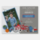Cute kindergarten graduation design featuring your child's photo surrounded by school-themed accessories such as a globe atlas, a notebook with the year of her graduation, a bicycle, backpack and books with a baseball, basketball, football and soccer ball. Composite design by Holiday Hearts Designs (rights reserved).