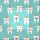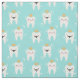 Cute pediatric dentistry fabric featuring a pattern of king teeth and queen teeth wearing crowns and glistening because they're so clean against a turquoise background.