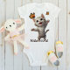 Introducing our adorable Hello World Baby bodysuit, designed to wrap your little one in warmth and joy. It features an endearing illustration of a cute kitten jumping for joy amidst colorful butterflies, bringing a touch of whimsy and cheer to any nursery. The sweet scene is perfectly complemented by editable text that reads "Hello World," allowing you to personalize the message and make it uniquely yours.