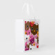 I own a lot of reusable grocery bags, but this one holds its box shape and simply stands up on its own even if there is nothing in it. Its stiffer than your regular reusable bag too, and the material is water resistant. I poured water on the exterior and it didn't penetrate inside to the other side. I'm buying a couple more. Wish I knew how durable these bags were or I would have purchased a few more with my initial order. I also like how it folds and buttons up when not in use, making it easy to put into a handbag or luggage. I haven't used this bag yet, as I purchased it for travel use, like when you're at the airport and need to small sturdy bag to place any airport purchases in, like food, souvenirs etc. I can tell you when you first see this bag, it looks very cheap, but after closer inspection of the material and the seams its a very sturdy reusable bag. I tested it out by putting some really heavy objects inside and I could not observe any stress to the bag at all. Another thing I like about it, is the fact the medium size that this is makes it easy to just carry it in your hand without the bottom of the bag scraping the ground, like most other bags do when you're short. That alone, deserves 5 stars. I just wish there were more colors to choose from! The PDX Airport Carpet printing looks just like the photo, and using this bag during travel might be a conversation piece when/if a native from Oregon happens to see it.