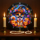 Cute Kitten Halloween Stained Glass Large Clock