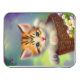 This cute fluffy kitten is sitting in a basket out in a yard with flowers. It is AI, artificial intelligence, art created at NightCafe then turned into a pastel.