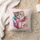 Cute Kitten in a Box Birthday Gift Throw Pillow