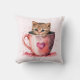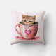 Cute Kitten in a Teacup with Hearts Throw Pillow