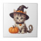 Cute Kitten in Halloween Witch Costume Ceramic Tile