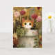 Adorable orange kitten emerging from a pottery pot amidst lush leaves and colorful flowers, creating an artistic and whimsical setting.
