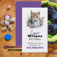 Cute custom pet sitter's business card, with watercolor artwork of a cute tabby kitten, with a bow tie, sitting in a bed or wildflowers. Personalize the text, with your information. Great to hand out to anyone with pets, for your pet sitting business.