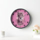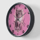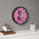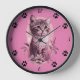 Cute Kitten Pink Wall Clock with Black Cat Paw