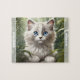 Cute Kitten Ragdoll Cat Jungle Plant Custom Name Jigsaw Puzzle
