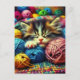 Cute kitten sleeping in colorful balls of yard calm and sweet.