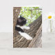 This cute card is printed with a photo of a cute black and white kitty resting in a tree. On the inside is text that says Just hanging out and thinking of you. The text is customizable and can be changed to words of your own.