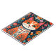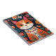 Personalized notebook. Adorable whimsical ai art with a orange kitty cat surrounded by folk art flowers in pink, orange and teal.