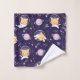 Towel set with an adorable pattern featuring kitty cat astronauts floating in space. Fun and whimsical.