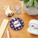 A key chain with an adorable pattern featuring kitty cat astronauts floating in space. Fun and whimsical.