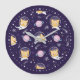 Cute Kitty Cat Astronauts Pattern Large Clock