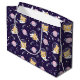 A gift bag with an adorable pattern featuring kitty cat astronauts floating in space. Fun and whimsical.