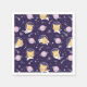 Paper napkins with an adorable pattern featuring kitty cat astronauts floating in space. Fun and whimsical.
