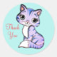 Cute kitty cat Thank You on light blue Classic Round Sticker