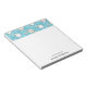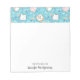 A notepad with a cute cat pattern, set on a blue background and decorated with rainbows and paw prints and more.