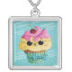 Cute Kitty Cupcake Silver Plated Necklace