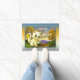 Doormat featuring a cartoon kitty on a colorful landscape background with your own (funny or other) texts. You can choose a different background color if you like, for the framing around the landscape. This design also nice for a home where kids live ;-)