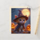 Cute kitty in a witch costume, Halloween Postcard