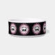 Cute kitty skull and crossbones surrounded by paw prints is so sweet for your cat's bowl.