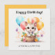 Birthday card featuring a cut kitten in a basket with colorful balloons. Especially nice for a cat loving girl birthday.