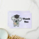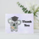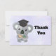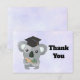 A mini thank you card with a light purple background. Illustrated with a cute koala bear with a black graduation cap eating some eucalyptus leaves.