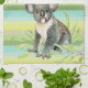Cute Koala bear on green striped bg custom name Kitchen Towel