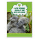 Cute baby koala bear riding on her mom's back. The talk bubble says (with a heart above), "I love spending koala-ty time with you, Mom." Get it? Kolalaty time. Quality time. A mom who shares your love for puns and wild life will love this Mother's Day card!
