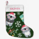 Perfect! Exactly what I ordered! I uploaded a picture of my blue chow, and the screen print was incredible. the back side of the stocking was the red and black checkered print. my puppy's name was also printed on the cuff of the stocking. PERFECT! Highly recommend this product! My puppy's name was screen printed onto the cuff of the stocking, the font was perfect!