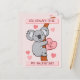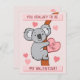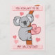 Cute koala Valentine's Day day pun. You Koalafy to be my Valentine - Qualify Valentine. A cute hand-drawn gray koala cartoon animal with hearts. All text is customizable. The "BE MINE" text written on the candy heart can be changed. Pink background.