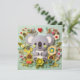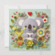 This Koala Greeting Card is perfect for any occasion! The card features a cute grey koala surrounded by a colorful array of flowers and leaves, making it a delightful gift for your loved ones. The playful design and vibrant colors are sure to bring a smile to anyone's face! The card is crafted with intricate details, and the koala has big round ears, green cheeks, and is holding a flower. Surrounding the koala is an assortment of colorful flowers and leaves made from various materials giving them a textured appearance. There are also small hearts interspersed among the flowers and leaves. The entire arrangement of the koala, flowers, and leaves is set against a soft green background that complements the colors of the elements.