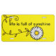 Trendy sweet ladies or girls car license tags with a cute flower and positive message Life Is Full Of Sunshine