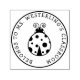 Mark the items in your classroom with this property of stamp with a lady bug and a charming font. Personalize with your name in text curving in an arc.
