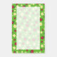 Cute and trendy pattern featuring hand drawn cartoon of ladybugs and daisies on a green background.