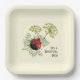 Adorable ladybug paper plate. This cute ladybug is marching up a dill plant. The text says "It's a Beautiful Day!" but you can change the text and personalize it if you choose, prior to placing it into your shopping cart. You'll have a very festive party table with these. Pair them up with our paper napkins and coasters for a complete look!