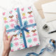This cute ladybug birthday wrapping paper is appropriate for girls up to the age of seven or eight. It features three images of ladybug girls dressed in pink and teal blue. In addition to the little girl images are colorful lady bugs , flowers, and your custom text. Personalize it just for her! Graphics by Prettygrafik Design, © Prettygrafik.com
