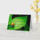 Adorable ladybug on a green leaf and scripture remind us we can cast our burdens on the Lord because He cares for us. A reminder for someone that you are praying for them. Original photograph by Cherie Haines.