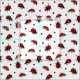 Beautiful ladybug fabric patterned with intricate hand drawn red ladybirds and black polka dots on white