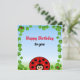 Cute happy ladybug surrounded by good luck four leaf clovers Birthday Card. Ideal for everyone. Lady bug is a universal symbol of good fortune! Great for kids and adults!