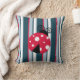 Cute Ladybug Red White Blue Stripes Pattern Throw Pillow
