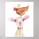 Cute Lamb Baryard Chickens Watercolor Poster