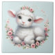 Cute Lamb with Floral Crown Illustration Ceramic Tile