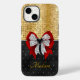 Cute large red glittery silver bow tie monogram Case-Mate iPhone case